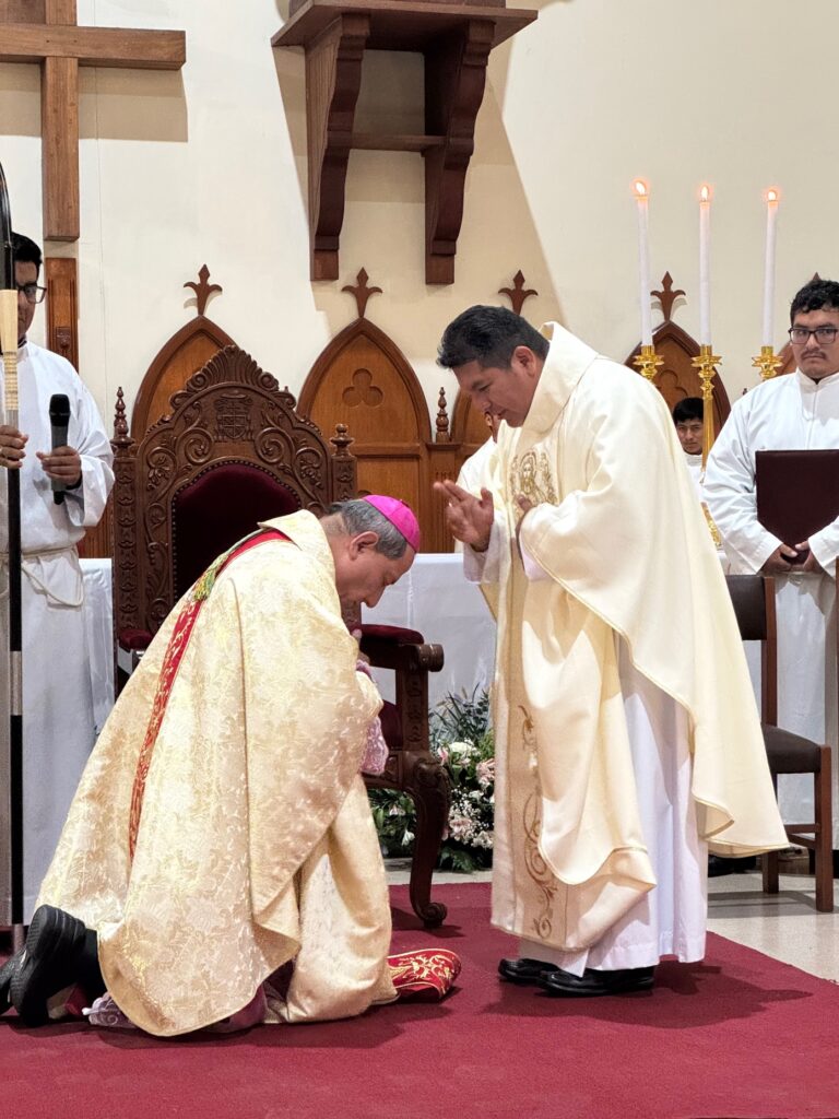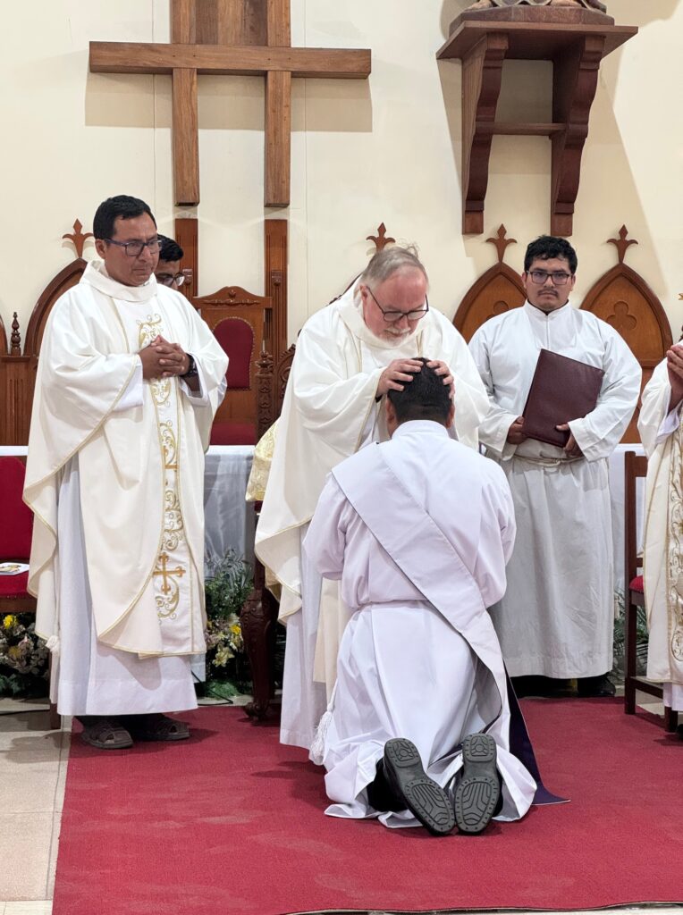 I was blessed to travel to Peru to attend the ordination of the community’s newest priest, Padre Augustine. It was a beautiful ceremony held at the main Cathedral in Chosica, presided over by Bishop Jorge Enrique Izaguirre Rafael, C.S.C. on December 9, 2025. All of the priests from Siervos de la Divina Misericordia were there, along with many other diocesan priests, and Brother Augustine’s family.